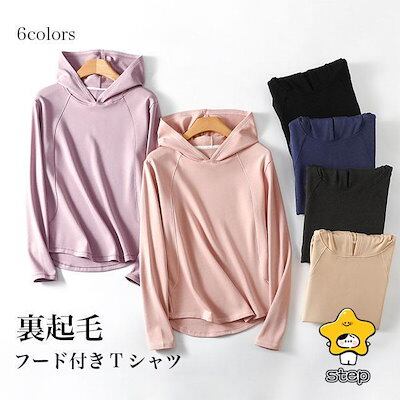 パーカー レディース 長袖Tシャツ 裏起毛 フード付 カットソー インナーパーカー トップス Tシャツ プルパーカー レイヤードコーデ インナー