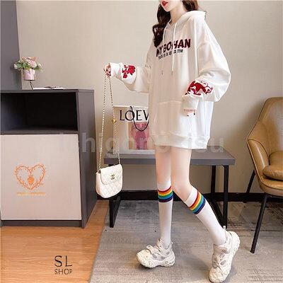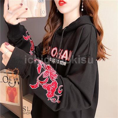 【beifengzh 0 ng】新作レディース パーカー トレーナー 英字プリント プルオーバー ゆったり フード付き 無地 シンプル 長袖 裏起毛 薄手 トップス アウター 体型カバー 大きいサイズ
