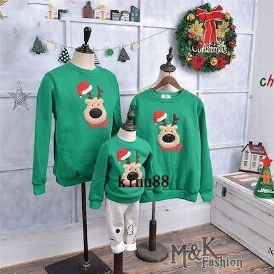 厚手裏起毛 クリスマス 衣装 トレーナー スウェット 親子ペア 家族お揃い トップス ベビー服 ベビー メンズ レディース キッズ 子供ママパパ 秋冬