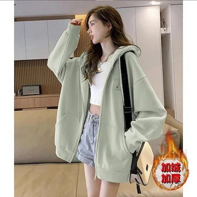 パーカー レディース カジュアルな上着女性のサイズは痩せて見える 韓国 冬アウター ジップパーカー 裏起毛