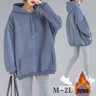 パーカー トレーナー スウェット 裏起毛 チュニック コットン トップス ルームウェア レディース 長袖 リブ袖 リブ裾 ミディアム ロング ビックシルエットパーカー あったか M L 2L | OPEN-korea