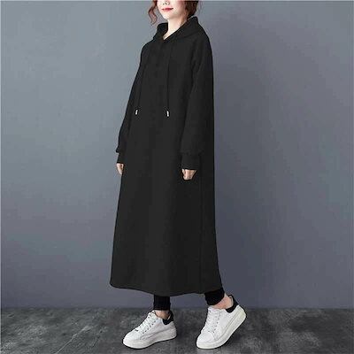 マキシワンピース 長袖 秋冬 スウェットワンピース ワンピース 裏起毛 フード付き ロング パーカーワンピース 大きいサイズ ロングワンピース 冬 レディース スウェット ワンピース マキシ丈 秋 体 | OPEN-korea
