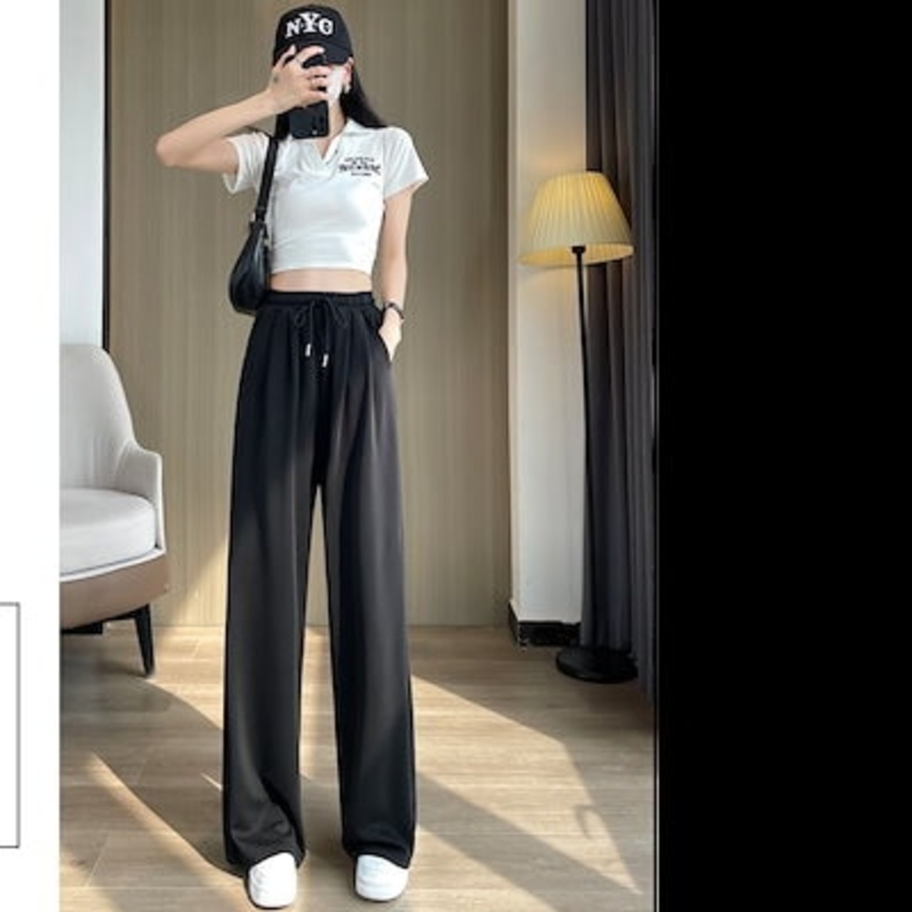 ワイドパンツ レディース 2024夏新作 ハイウエストストレートパンツ ドレープアイスシルクパンツ タオパンツ