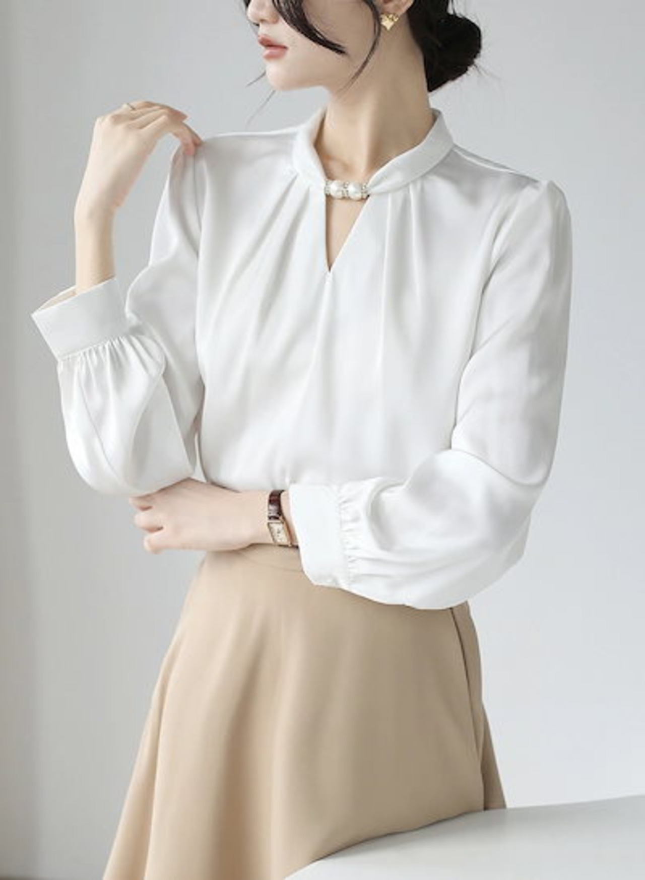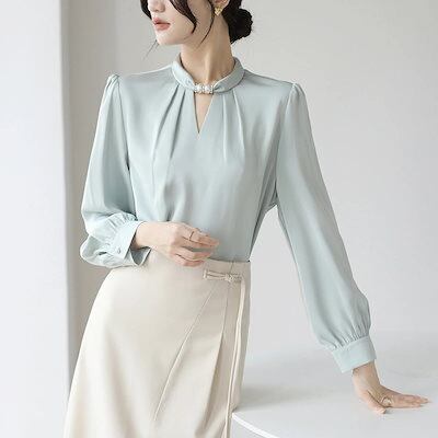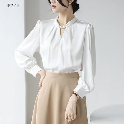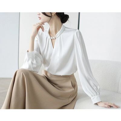 ブラウス オフィスカジュアル 春 レディース トップス 長袖 シャツ パール Vネック スキッパーカラー シャツブラウス 白ブラウス 長袖ブラウス フォーマルブラウス ビジネススーツ インナー ジャケ | OPEN-korea