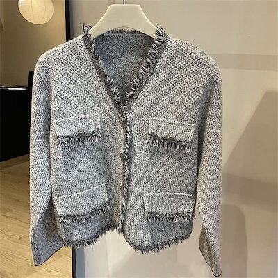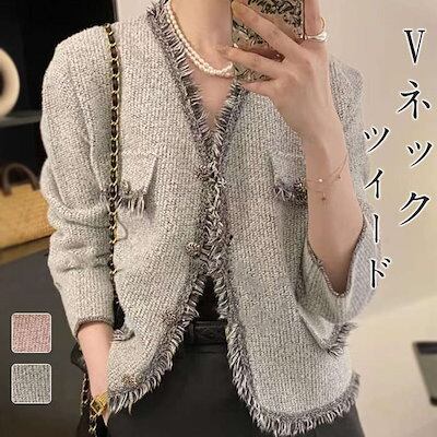 ツイードジャケット アウター レディース Vネック ジャケット ツイード 羽織り 長袖 ノーカラー フォーマル アウター スーツジャケット ノーカラージャケット スーツ 襟なし トレンド 春 秋冬 着 | OPEN-korea