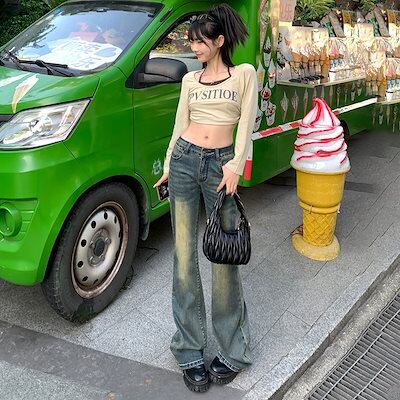 2024 初秋 デニムパンツ パンツ デニム ジーンズ ワイド ストレート ハイウエスト 脚長効果 美脚効果 細見え ウォッシュ加工 カジュアル おしゃれ かわいい レディース 韓国ファッション | OPEN-korea