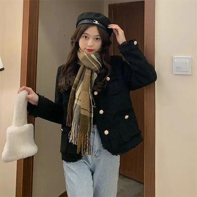 新作 トレンド ジャケット レディース ノーカラージャケット フォーマル ライトアウター ツイード ツイードジャケット ツイードブレザー 長袖 コート 中綿入り 大き