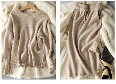 長袖セーター 上下レディースセットアップ ニット アウター 二点セット ベーシックニットおしゃれ セーター ワイドパンツ 福袋