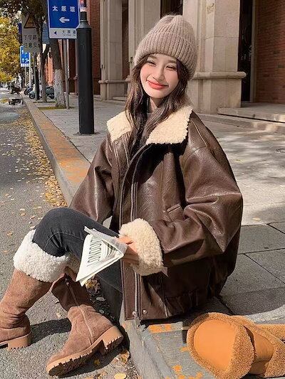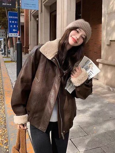 人气新作ライダースジャケット裏起毛 冬アウター ゆったり ショート レザージャケット 韓国ファッション 流行り アウタートップス ジャンレディース 着痩せ 高級感コート裏起毛ファッションジャケット | OPEN-korea