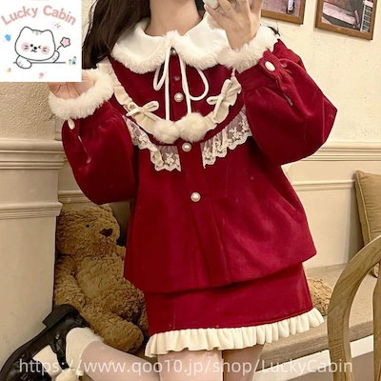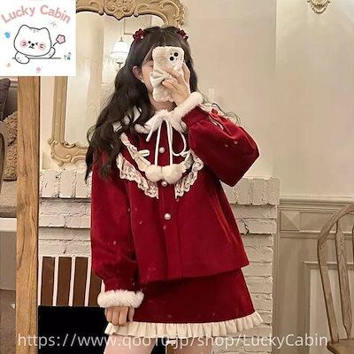 【 3天内迅速な出荷 】サンタコス 冬 レッド ツイード クリスマス レディース 新年 ショート トップス スカート セット脚魅せミニスカート