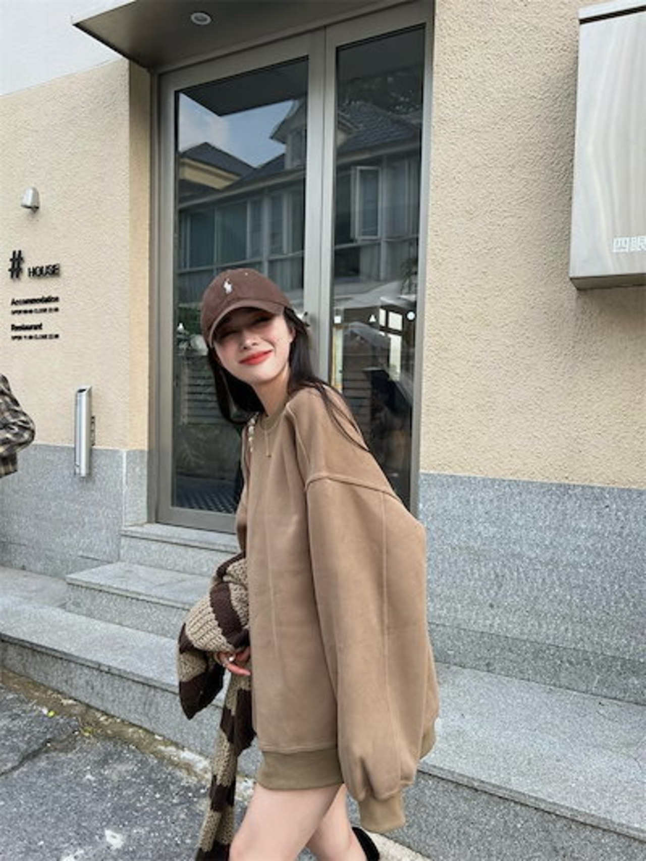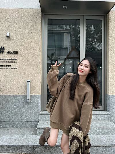 2024 秋冬 トレンド無地 普段使いトップス長袖かわいいK-POPTロング黑白レディース韓国風ロゴ衣装ルーズゆったりプリントおしゃれサイズスリーブシルエットファッション系サイドシャツフット | OPEN-korea