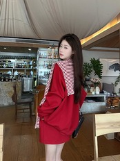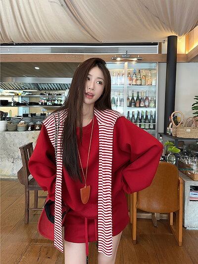 2024 秋冬 韓国 かわいい レディース モックネック長袖トップスレトロセット黑白パーカーサイズ丈ミニ春カジュアルスポーツファッション系通学学生袖お出かけアップシルエットトラック羽織り上下 | OPEN-korea