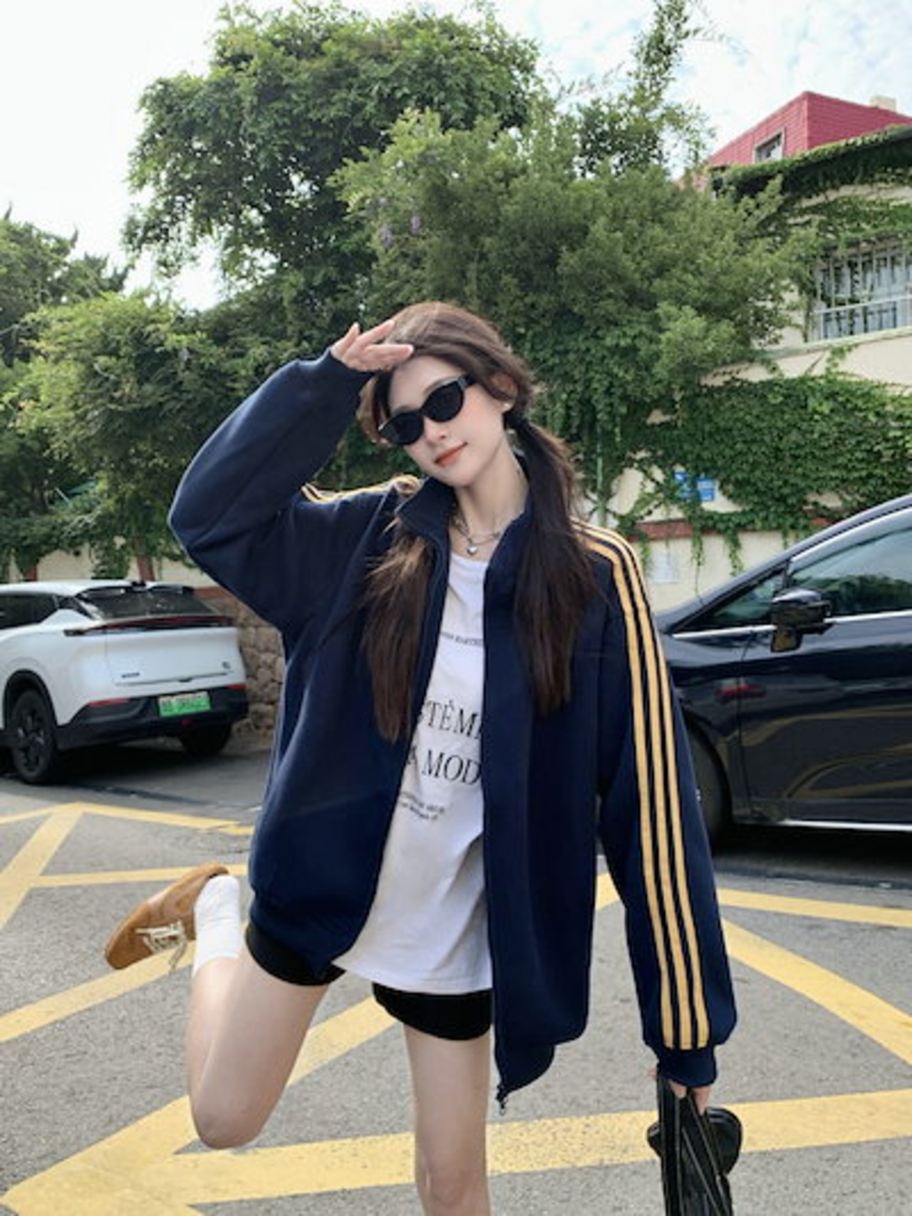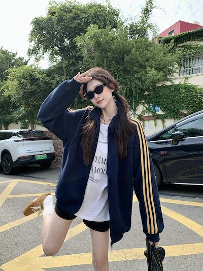2024 秋冬トップスかわいいパーカー ハイネック韓国風長袖ゆったり細見え白黒おしゃれレトロチャッシルエット甘め大人っぽ韓国フルサイズファッション系ルーズレディースサイドお出かけ学生通学トラック羽織り | OPEN-korea