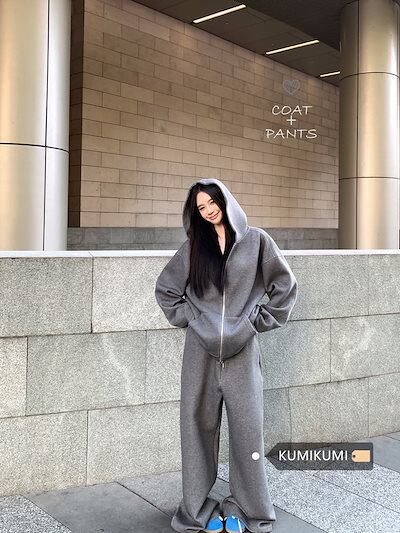 2024秋冬 韓国 かわいい レディース 無地 フード付き長袖アウターレトロセット黑白フーディーブルサイズ丈トップス春カジュアルスポーツファッション系通学学生袖お出かけアップシルエットトラック羽織り | OPEN-korea