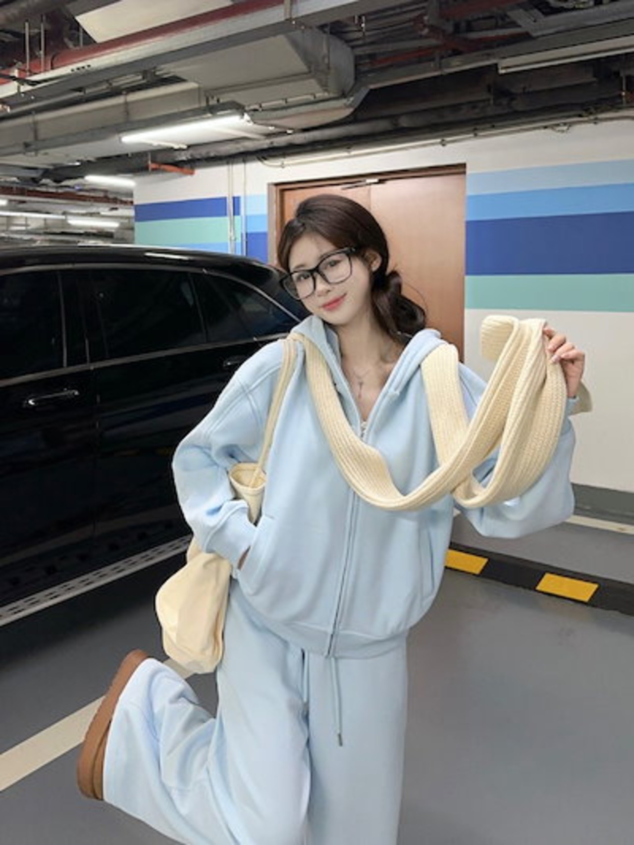 2024 秋冬 韓国 かわいい レディース 厚手裹起毛フード付き長袖アウターレトロセット黑白フーディーブルサイズ丈トップス春カジュアルスポーツファッション系通学学生袖お出かけアップシルエットトラック | OPEN-korea