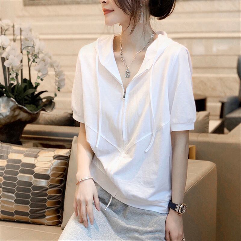 初回送料無料ゆったりとした半袖Tシャツトップカジュアルフード付きトップス人気商品