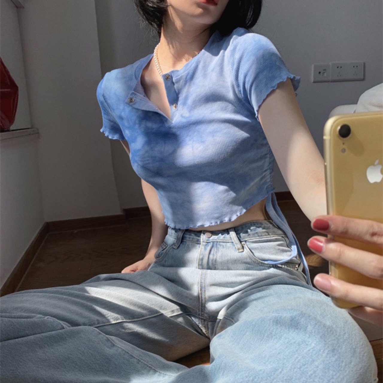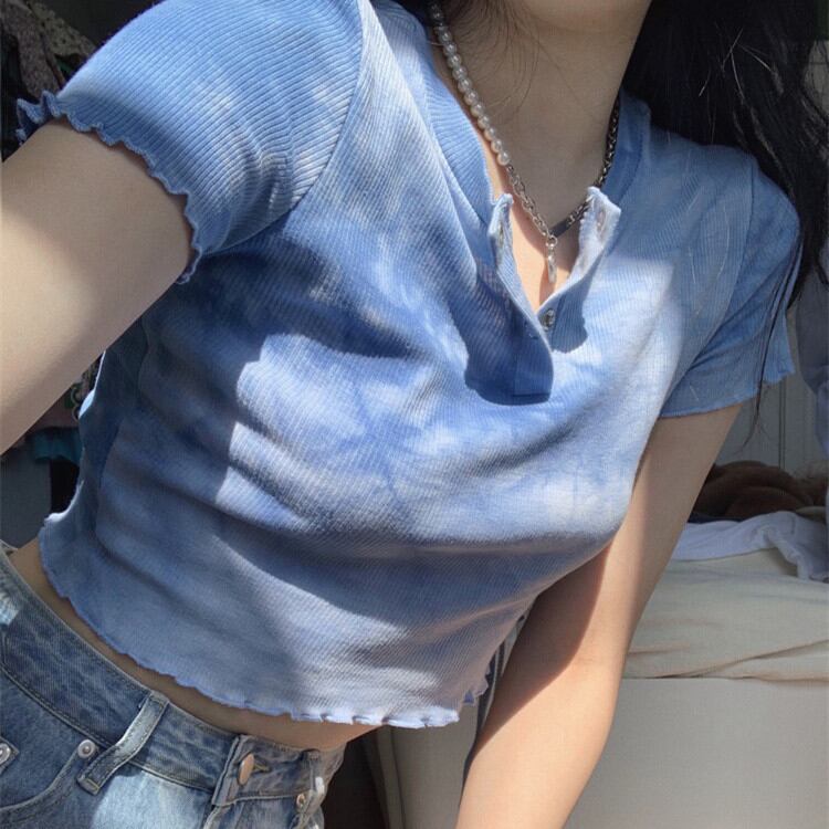 二文字:絶美早い者勝ち ホットガールスタイル トップス デザインセンス ハイウエスト 半袖 Tシャツ
