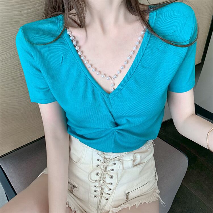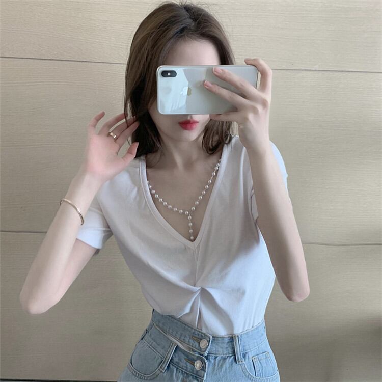 大人のキレイをお約束 通勤する セクシー Vネック トップス 半袖 Tシャツ ホットガールスタイル
