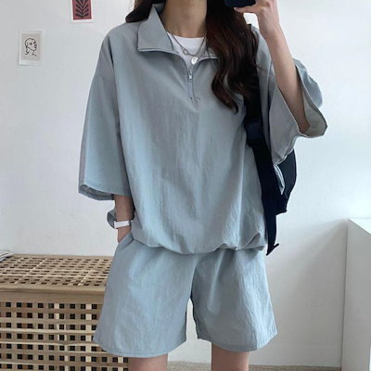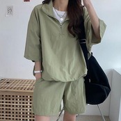 ラッシュガード セットアップ パーカーセットアップ レディース UV対策 紫外線対策 パンツ オーバーサイズ トップス ジップアップ ショートパンツ 無地 薄手