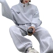 人気ブランド スウェット 裏起毛 ゆったり 秋服セットアップ 肌にやさしい 綿 長袖 立ち襟 アウター 無地 スウェットパンツ レディース ト ウェアスポーツウェア