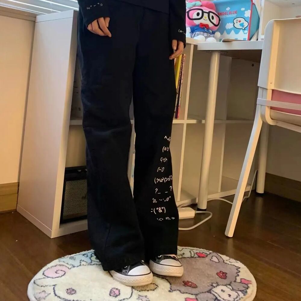 レディースハイウエストフレアパンツ,フレアフィットパンツ,カジュアル,トラックスーツ,プリント,韓国シック,ブラック,サマー,ニューコレクション2024 y2k ボトムス T240901065746_01 | OPEN-korea