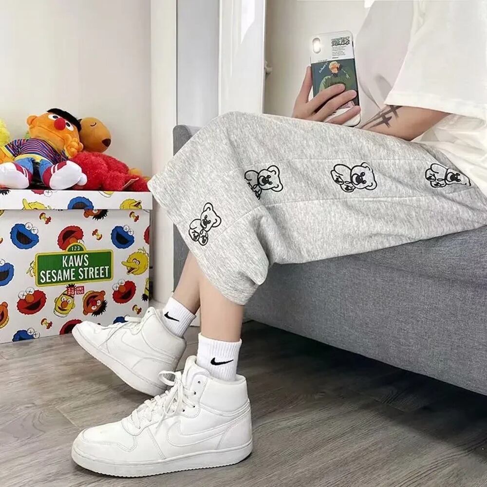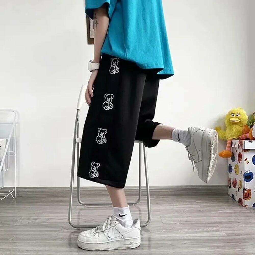 メンズヒップホップショーツ,韓国スタイル,カジュアルパンツ,ルーズフィット,ベルボトム,ストレートレッグスウェットパンツ,トレンディ y2k ボトムス T240901101317_01 | OPEN-korea