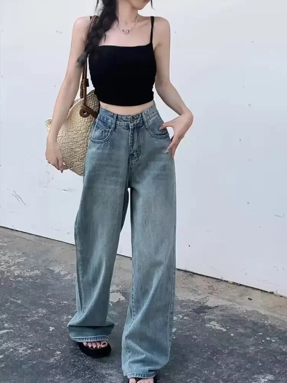 女性用ハイウエストパンツ,ルーズフィット,デニム,カジュアル,ヴィンテージ,アメリカンスタイル,スリミング,ファッションデザイン,官能的 y2k ボトムス T240901101703_01 | OPEN-korea