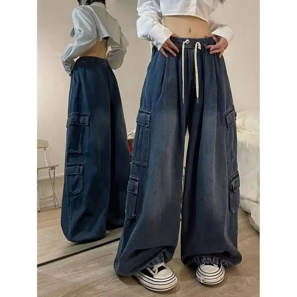男性のためのレトロな日本のダンガリー、クールなドラッグガール、大胆なカジュアルパンツを作るための水を洗う、ワイドレッグモップパンツ、夏の薄い y2k ボトムス T240901102431_02 | OPEN-korea