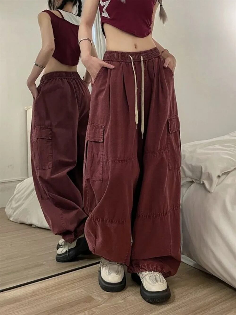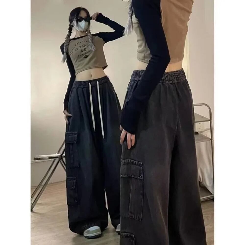 男性のためのレトロな日本のダンガリー、クールなドラッグガール、大胆なカジュアルパンツを作るための水を洗う、ワイドレッグモップパンツ、夏の薄い y2k ボトムス T240901102431_08 | OPEN-korea
