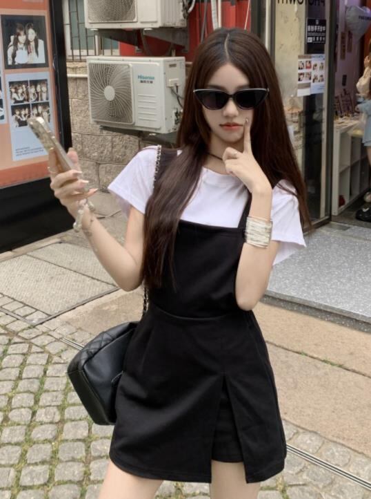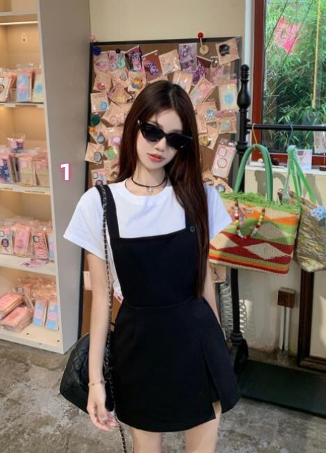春夏新作 女 レディース 袖なし 吊りスカート ミニ ワンピース ドレス 台型スカート セット