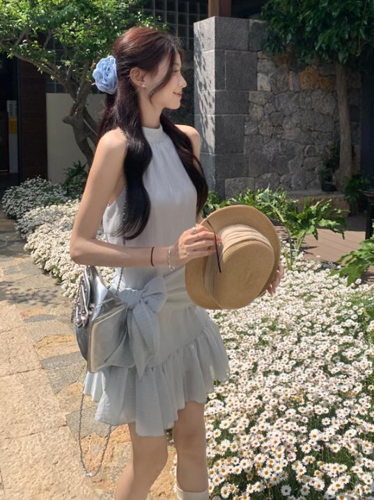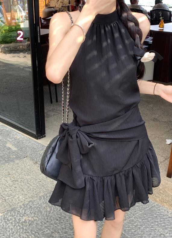 春夏新作 女 レディース ハイウエスト 袖なし ミニ ワンピース ドレス 台型スカート