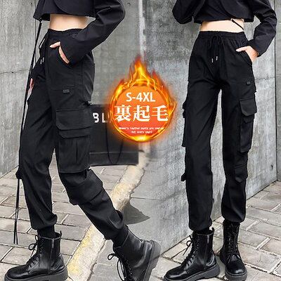 新作 トレンド カーゴパンツ レディース 裏起毛 ワークパンツ ハイウエスト 秋冬 ロング ボトムス カーゴ ストリート系 カジュアル ゆったり 着痩せ おしゃれ
