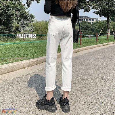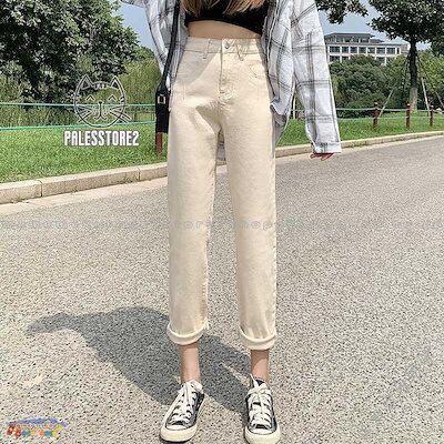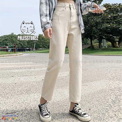 デニムパンツ パンツ デニム レディース ストレート ホワイト ベージュ ジーパン 物 ロング丈 9分丈パンツ 韓国風 着痩せ オシャレ 細身 ハイウエスト お出かけ 着痩せ | OPEN-korea