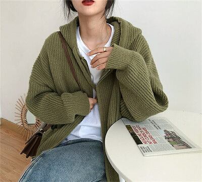 ニットパーカー アウター レディース カーディガン パーカー 秋冬 ニット フード付き ニットカーディガン 長袖 長袖パーカー トップス ショート丈 無地 ニットトップス 厚手 ボタン付き ニットセー | OPEN-korea