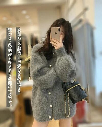 カーディガン レディース 秋冬 シャギーニット カーディガン レディース 秋冬 ニットカーディガン ショート カジュアル パールボタン ニット 前開き 羽織もの 秋 冬 バルーン袖 落ち感 体型カバー | OPEN-korea