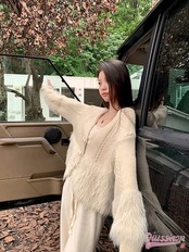 24トップスレディースニット長袖 韓国カーディガンショート丈ボタン羽織可愛いおしゃれベージュ甘めフェミニンスタイルアップ色っぽ女っぽカジュアルきれいめ大人上品着回しゆったりフェイクフレンチ | OPEN-korea