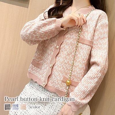カーディガン レディース パールボタンニットカーディガン ベージュ 黒 長袖 ロング きれいめ 暖かい ゆったり ニット 丸首 ウール 人気 フリース 秋 Vネック ショート丈 大きいサイズ ブラック | OPEN-korea