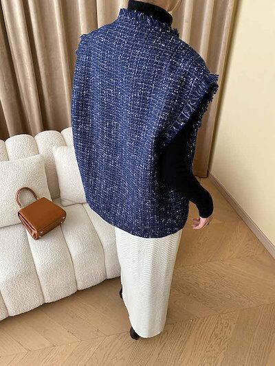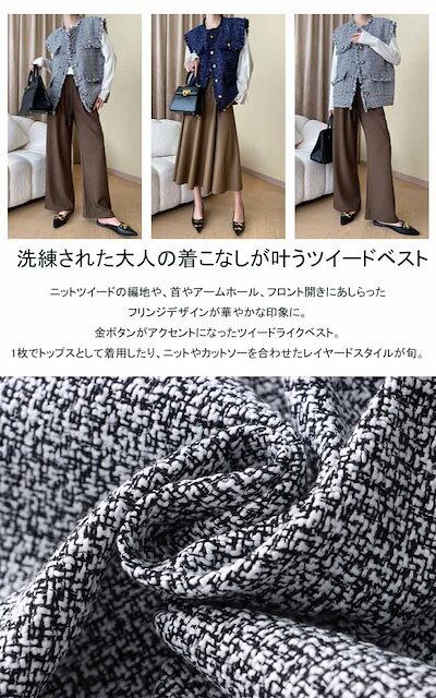 ツイードベスト ベスト ツイード レディース 秋冬 トップス オーバーサイズ ゆったり 金ボタン 金釦 羽織り カーディガン カーデ ジレ ノースリーブ レイヤード 前開き フリンジ ビジネス スーツ | OPEN-korea