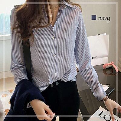 TOKYO BASICシャツ レディース ストライプボタンシャツ 麻 カットソー トップス ブラウス 襟付き Tシャツ ポロシャツ おしゃれ ロゴ スポーツ 春 カジュアル 秋 長袖 ゆったり ブランド 形態安定 しわにな | OPEN-korea