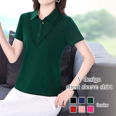 シャツ レディース Vデザイン半袖シャツ ボタンシャツ トップス 麻 カットソー 事務服 春 オフィス しわになりにくい スポーツ 半袖 ポロシャツ Tシャツ カジュアル シャツブラウス ブラウス ブ | OPEN-korea