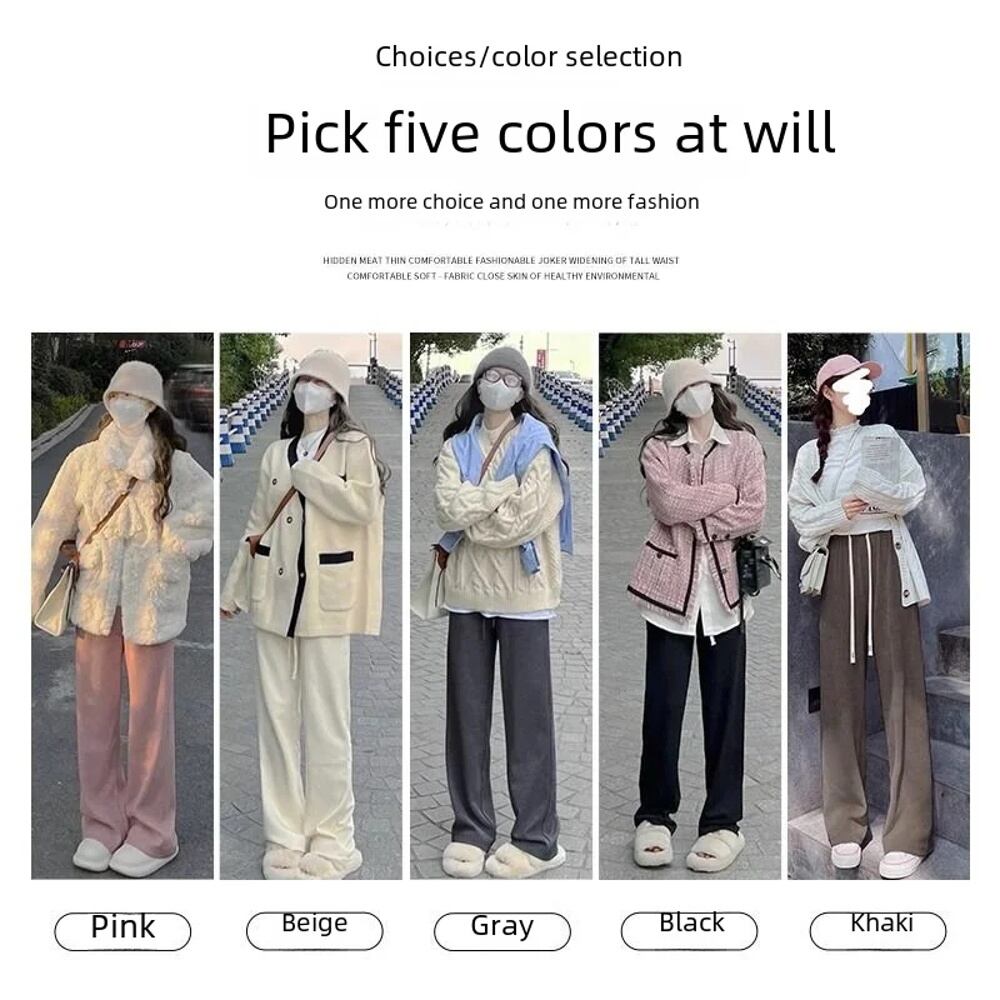 女性用ハイウエストフリース裏地コーデュロイベルボトムパンツ、ストレートレッグ、カジュアル、スモールシェニール、春、秋、冬 ボトム ワイドレッグ バギーパンツ T240901094832_03 | OPEN-korea
