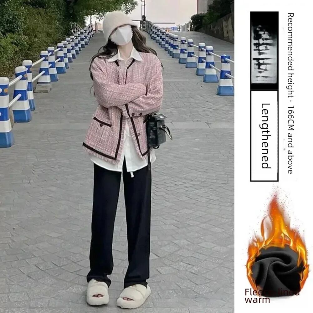 女性用ハイウエストフリース裏地コーデュロイベルボトムパンツ、ストレートレッグ、カジュアル、スモールシェニール、春、秋、冬 ボトム ワイドレッグ バギーパンツ T240901094832_04 | OPEN-korea