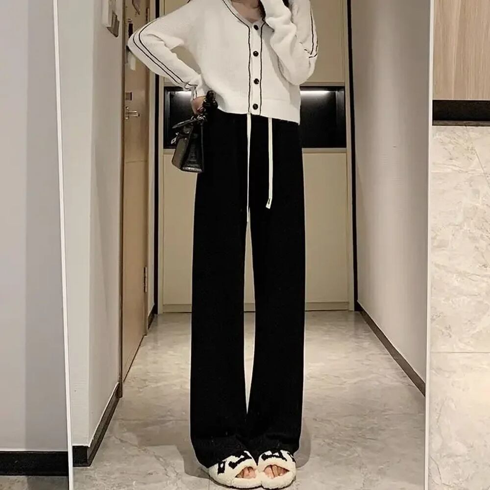 女性用ハイウエストフリース裏地コーデュロイベルボトムパンツ、ストレートレッグ、カジュアル、スモールシェニール、春、秋、冬 ボトム ワイドレッグ バギーパンツ T240901094832_13 | OPEN-korea