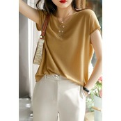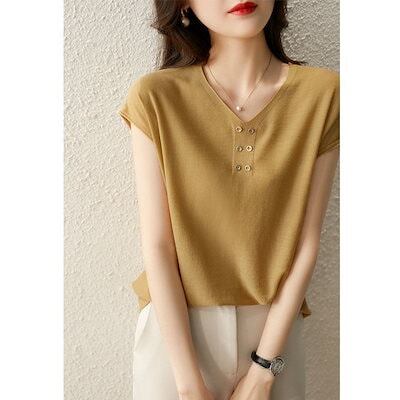 夏 人気なTシャツ Tシャツ アイスシルク シャツ した クコットン Vネック ニット半袖//半袖 韓国ファッション レディース