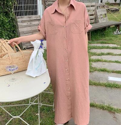 2024 春夏 母の日シャツワンピース レディース トップス ゆったりワンピース 大人気 2024春夏新作ゆったりカジュアルロングワンピース 半袖 tシャツワンピース 韓国 ワンピース大きいサイズワン | OPEN-korea