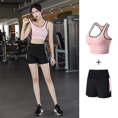 【2点セット】 春夏ランニング お家ヨガウェア セットアップ レディース Tシャツ ヨガウェア上下セット ジム ランニング フィットネススポーツブラベスト上着半袖長ズボン ジョガーパンツ 春夏秋 | OPEN-korea