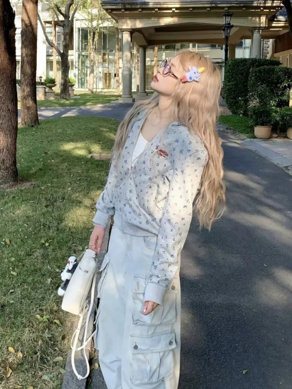 広州-レディースフローラルプリント長袖スウェットシャツ、原宿カーディガン、特大トップス、レディースヴィンテージ服、カジュアル、y2k、秋 パーカー ジャージ y2k T240908171110_01 | OPEN-korea