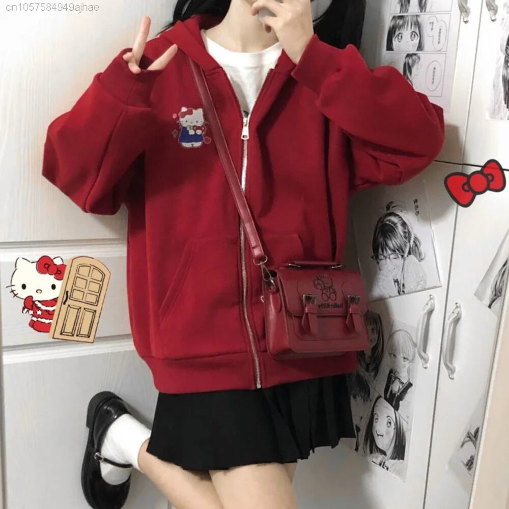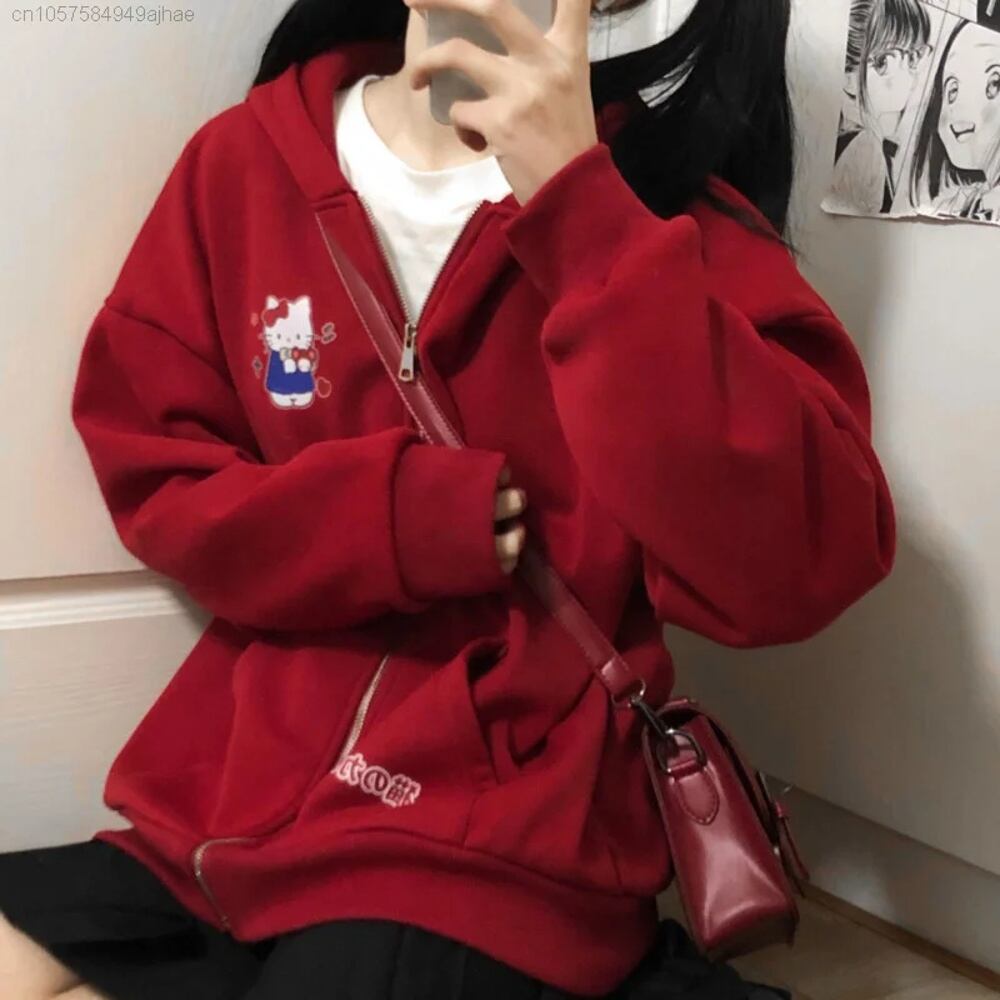 女性のためのキティレッドの薄いコート,長袖カーディガン,y2kトップ,エレガント,ジッパー,ファッショナブル,春 パーカー ジャージ y2k T240908171213_01 | OPEN-korea