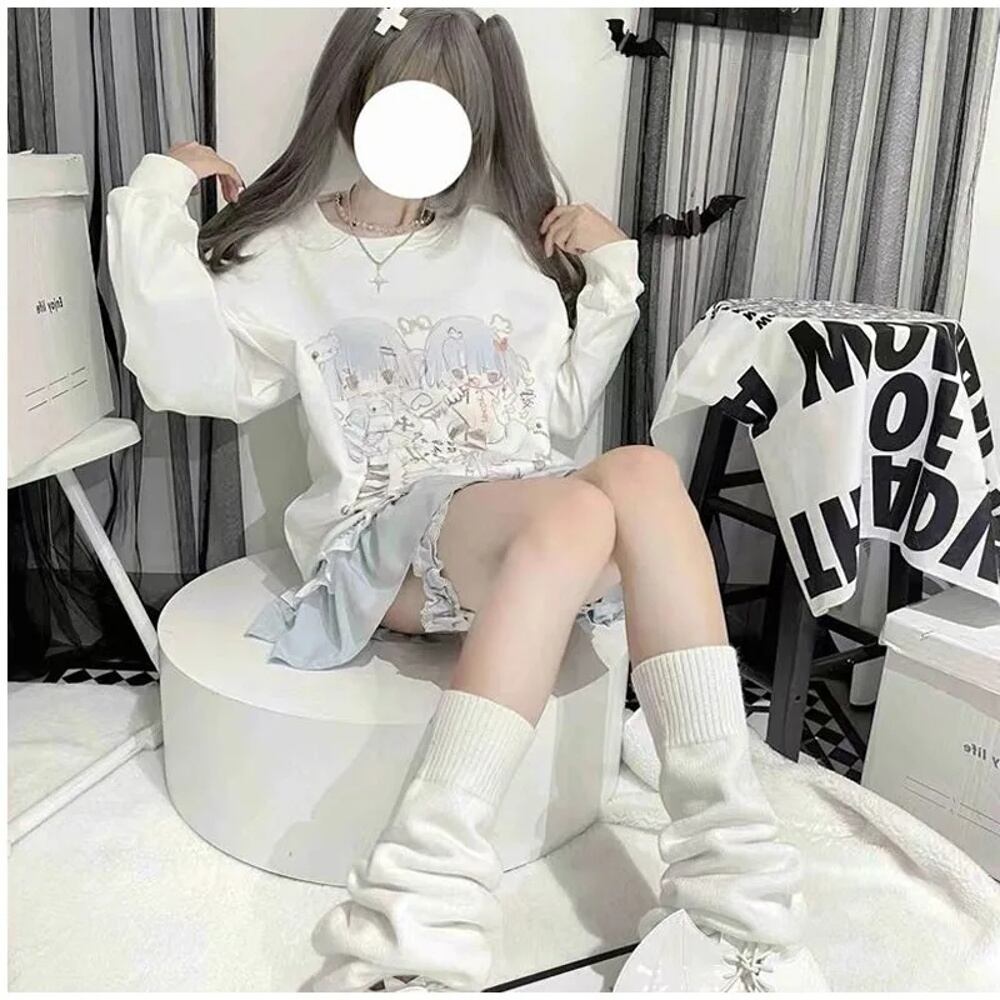 女性の日本のアニメプリントロングシャツ,白いゆったりとしたパーカー,カジュアルな原宿サブカルチャー,かわいい日本のパーカー,愛らしいy2k,春 パーカー ジャージ y2k T240908171332_01 | OPEN-korea