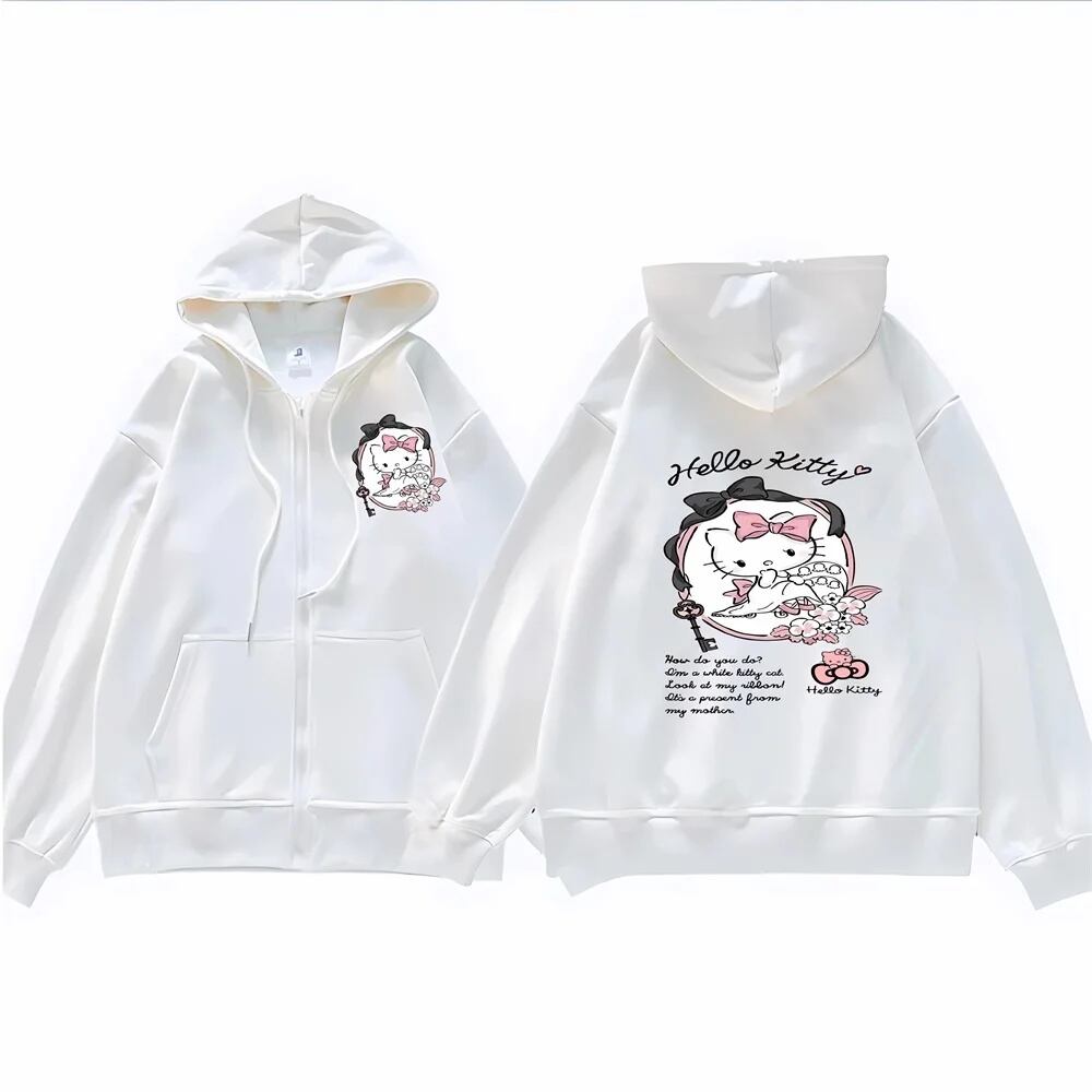 女性のかわいいプリントパーカー、サンリオアニメ、ハローキティ漫画、y2k、ルーズスウェットシャツ、スウィートカーディガンウェア、韓国の学生、ファッション パーカー ジャージ y2k T240908171336_01 | OPEN-korea